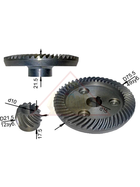 Коническая пара для ИНТЕРС УШМ 2300 15х75 49 зуб, 10х22 12 зуб