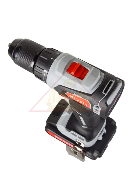 Модель работает от аккумулятора Li-Ion, не обладающего «эффектом памяти» и способного заряжаться из любого состояния. В комплект прилагается дополнительный аккумулятор, что позволяет увеличить длительность рабочего процесса без подзарядки. Патрон рассчитан на сверла разной величины (от 0,8 до 10 мм), благодаря быстрозажимной конструкции замена осуществляется моментально. Максимальный диаметр сверления для дерева составляет 30 мм, для металла – 12 мм. Наличие двухскоростного редуктора позволяет выбрать оптимальную частоту вращения с учетом вида материала и его толщины. Обратный ход дает возможность осуществлять выкручивание или ослабление крепежа, быстро и легко высвобождать застрявшее сверло. Дрель-шуруповерт запускается нажатием клавиши пуска и мгновенно останавливается при ее отпускании. В устройстве предусмотрена блокировка шпинделя для защиты от случайного включения, а также подсветка рабочей зоны для комфортной работы в условиях слабого освещения. Инструмент поставляется в специальном кейсе для удобства хранения и транспортировки.