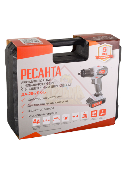 Производительная, надежная, компактная модель Ресанта ДА-20-2ЛК-Б с 2 аккумуляторами, бесщеточным двигателем пригодится в частном хозяйстве, на строительных и других рабочих объектах, где нет возможности подключения к сети.