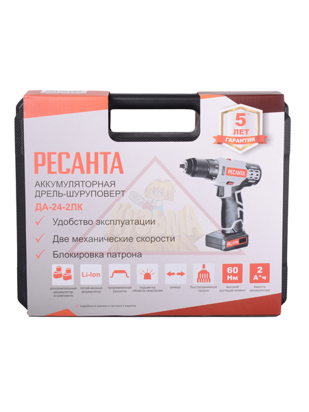 Дрель-шуруповерт аккумуляторного типа Ресанта ДА-24-2ЛК используется для сверления отверстий и монтажа крепежных элементов. Не требующий подключения к сети, инструмент может применяться при отсутствии электропитания. Наличие в комплекте двух литий-ионных аккумуляторов емкостью 2 А*ч с напряжением 24 В обеспечивает длительность непрерывной работы. Время зарядки составляет 1 час. Щеточный двигатель гарантирует высокую производительность. Система электронной защиты от перегрузок увеличивает срок службы инструмента.