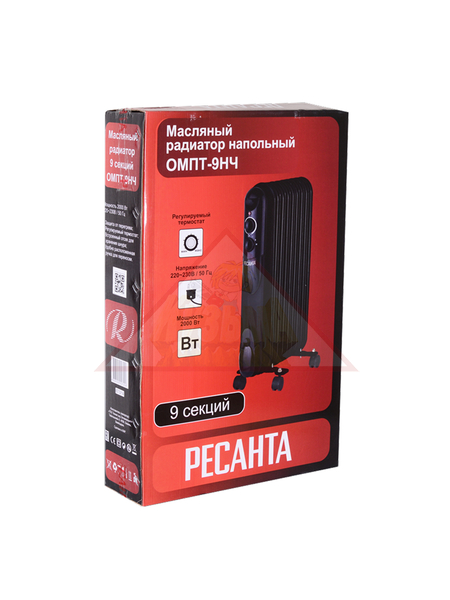 Модель РЕСАНТА ОМПТ-9НЧ окрашена в черный цвет методом напыления. Порошковая покраска металлического корпуса обеспечивает стойкое полимерное покрытие, устойчивое к нагреву. Корпус состоит из 9 секций, в качестве теплоносителя используется минеральное масло.