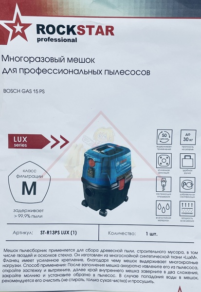 Мешки-пылесборники для строительного пылесоса BOSCH GAS 15 PS 1 шт., арт. ST-R13PS LUX (1)