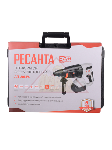 Перфоратор аккумуляторный Ресанта АП-20Li/4 — это мощный и функциональный инструмент, предназначенный для сверления, сверления с ударом и долбления. Подходит как для профессионального применения, так и для домашних работ. Благодаря высокой мощности и энергии удара 3,2 Дж, перфоратор легко справляется со сверлением отверстий в бетоне, кирпиче, камне и других твердых материалах.
